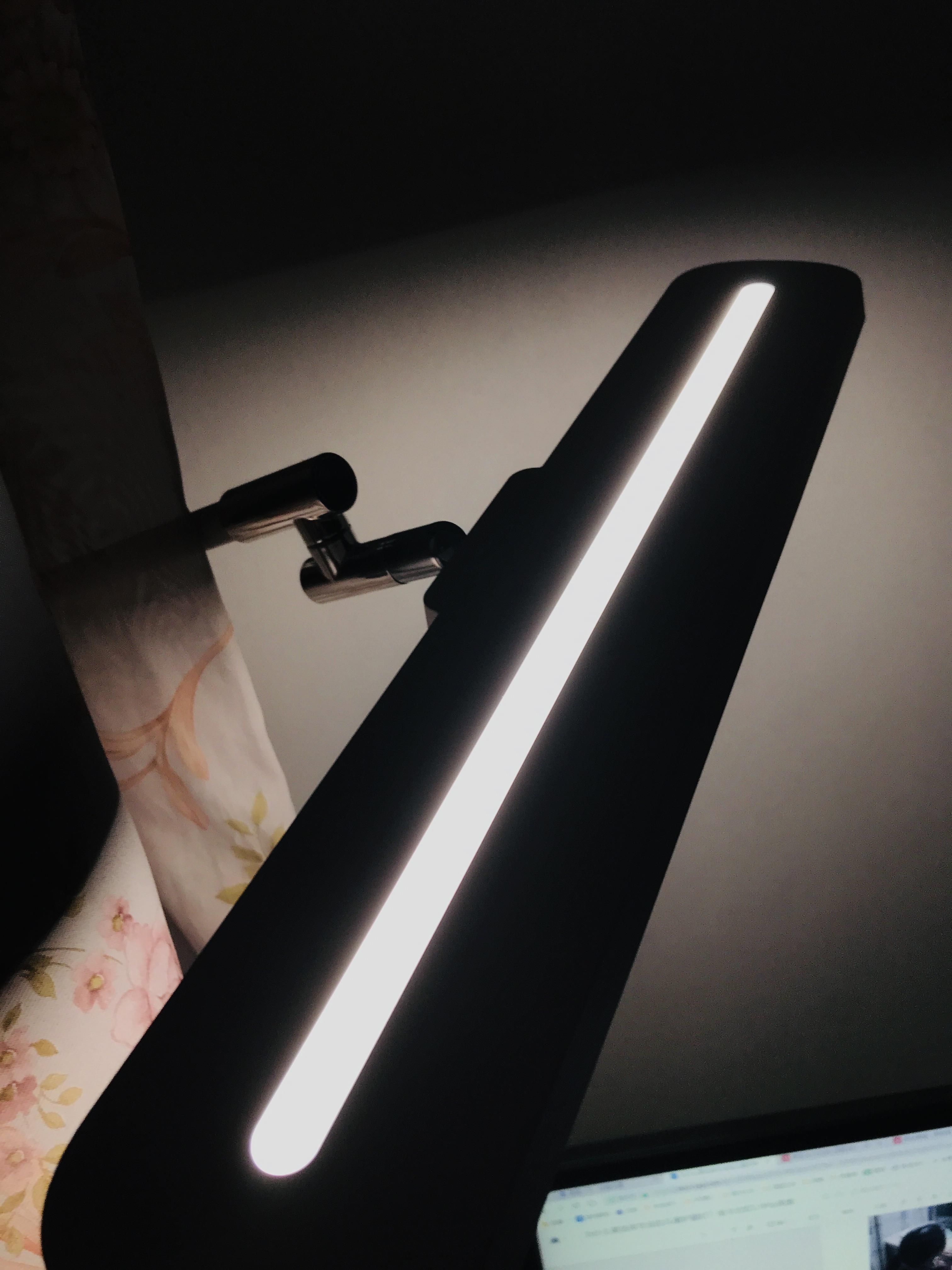 像顶部的那个向上发光的设计,其实并不太亮,但它可以在使用的过程中祛除阴影,或者灯晚上把其他设置都关闭,只留下“向上发光”当做小夜灯也是可以的。