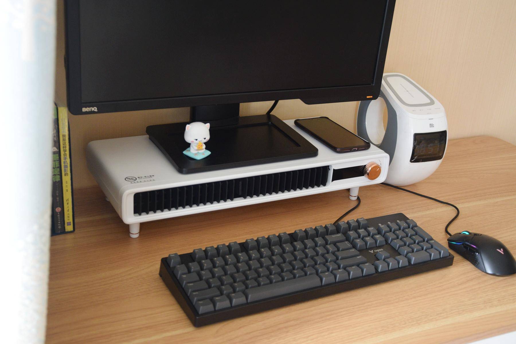 ABS阻燃材料机身,表层附带隔热板,暖风工作中,机身没有明显温度变化,还有附带手机无线充电功能。多功能适用任何场合还可以调节桌子高低度。