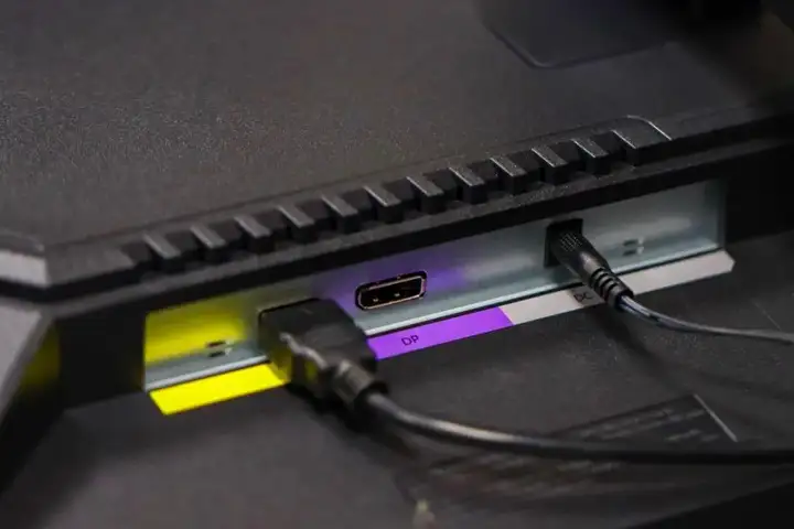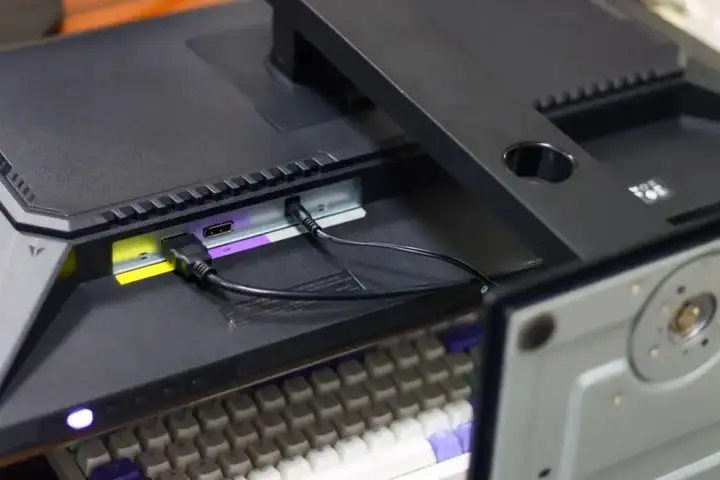 在接口方面,这款显示器也是够用的,它背后设计有设计了1个HDMI、1个DP,以及一个电源插口,能较好满足不同设备连接需求,拓展更多外设。