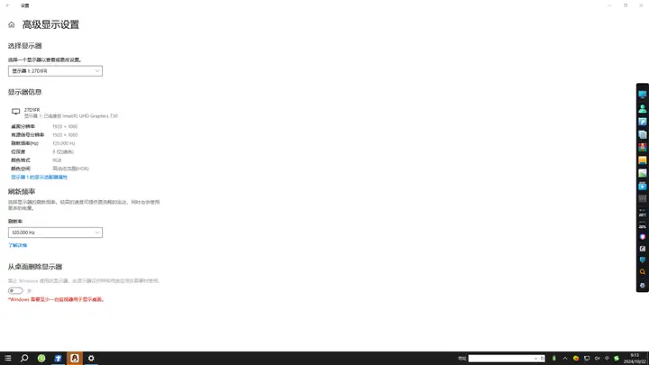 在刷新率方面,显示器最高支持120Hz刷新率。