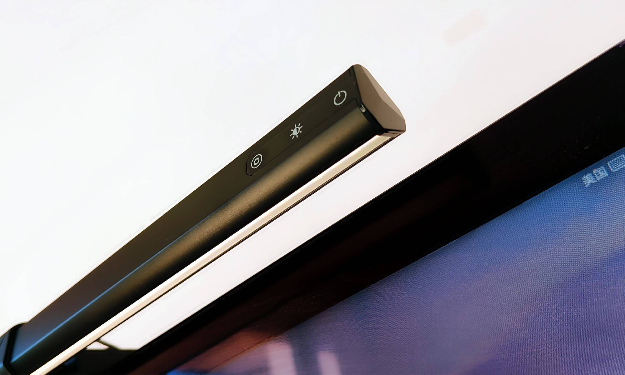 书客屏幕挂灯设有三个触摸控制按键,从右至左分别是电源开关、色温键和亮度键。按键位于挂灯右侧,采用高亮面板,支持单击、长按等操作。