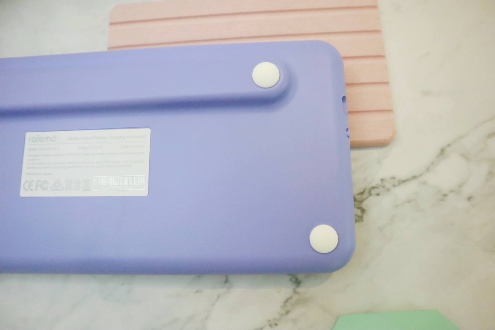 雷柏ralemo Pre 5多模无线机械键盘的下部有四个胶质的支座,这四个支座的高度是不同的,这样能使键盘使用的时候有一定的倾斜角度。