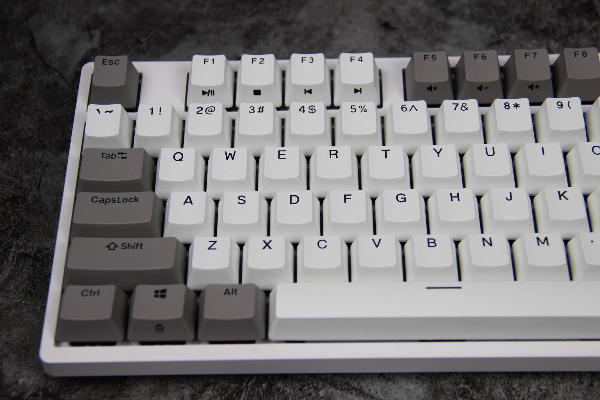 键盘主体选用干干净净的天然白色——介乎于象牙白与亮白之间的颜色,视觉感受比较养眼。搭配同样金属质感的灰色,与类肤质感的天然白一起,打造白-灰的静谧情景。