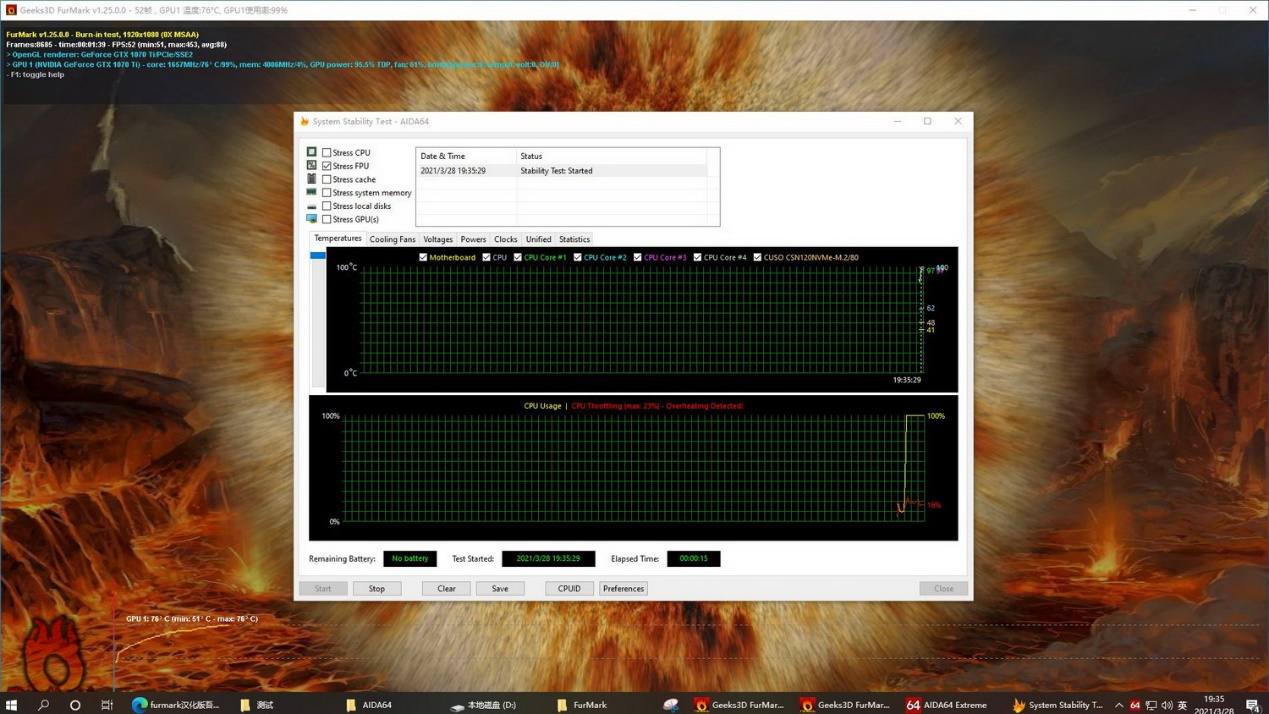 用Furmark跑了甜甜圈,功耗飙升到了260W左右。