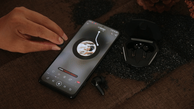 打开充电舱的盖子,我们就可以看到GT4耳机本身了,从造型结构上来看,它采用了和苹果AirPods一样的分体式设计,且耳机设计成半入耳式的结构,属于比较主流的造型结构设计。