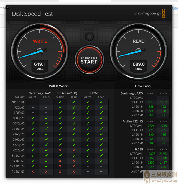 接下来再来测试一下SSD的读写速度,测试工具是Disk Speed Test,下面是测试数据。读写速度基本上都接近了极限值,日常使用完全够用。就算是传一整部的电视剧,平均就是一秒一集。