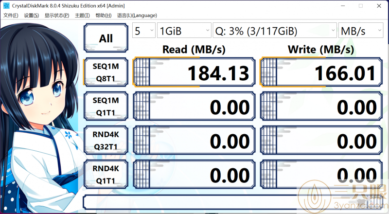 这是U盘读写测试,笔者选用的是aigo U358这款U盘,这是一款USB 3.2规格的高速U盘,在读写测试中可以最大体现这款ORICO奥睿科分线器的性能,实测成绩令人满意,读取速度为:184MB/s,写入速度为:166MB/s,超过官方宣称的读取速度180MB/s,达到了慢速,由此可见这款分线器的性能也是很强的。