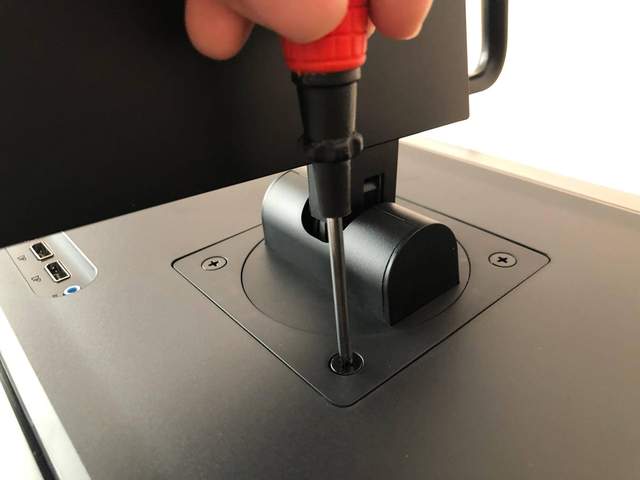 支架的另一端,用四个螺丝固定在显示器的背面。