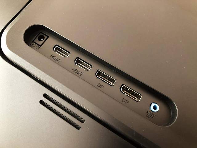 细心的玩家肯定发现了,接口下面不是还有个喇叭吗?很遗憾,并不是,这仅仅只是两排散热孔而已。泰坦军团T27QR仅支持外接音频播放设备,没有内置音箱。