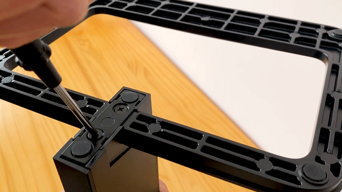 其实看配件就知道了,泰坦军团T27QR不支持徒手快装,十几个不同类型的螺丝混在一起有些麻烦。底座与支架的分体安装很简单,对准卡槽放入即可自动卡住。
