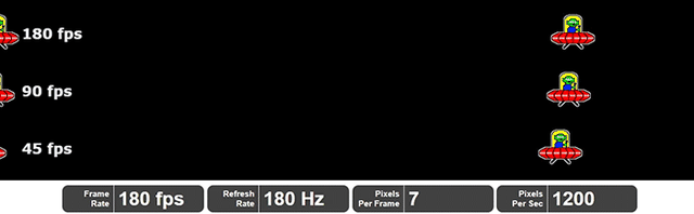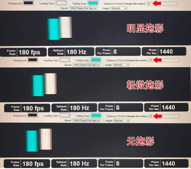 180hz刷新率带来的帧率提升是非常显著的,在以每秒1200像素的速度下移动时,存在肉眼可见的差异,如果将显示速度变慢,区别会更加明显。