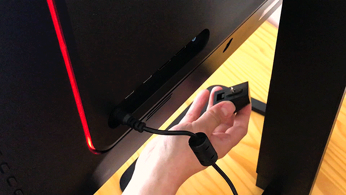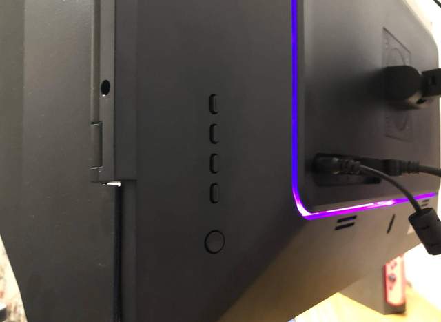 显示器背后有一个micro usb接口,镭射灯可以直接装在如图位置。不过既然是micro usb接口,外接设备的扩展就非常受限了,譬如显示器挂灯,就无法利用此接口供电。