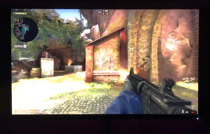 在同一时间点上,对比差距极为明显。在画面高速切换的过程中,当60hz刷新跟不上画面显示速度时,屏幕出现了大面积的残影现象,而且在画面输出的时间上,也出现了明显的滞后表现。