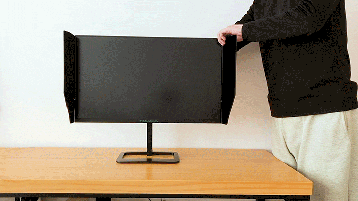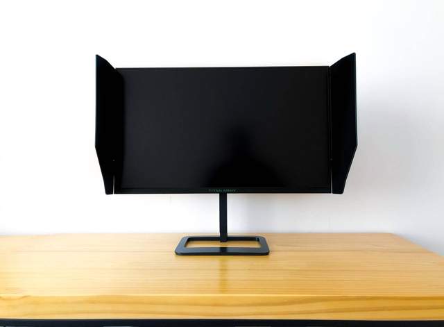 遮光板通过简单的螺丝安装后,可以在显示器的两侧旋转摆动,以适应不同的光线需求。不过在我看来,更大的意义在于装饰吧。
