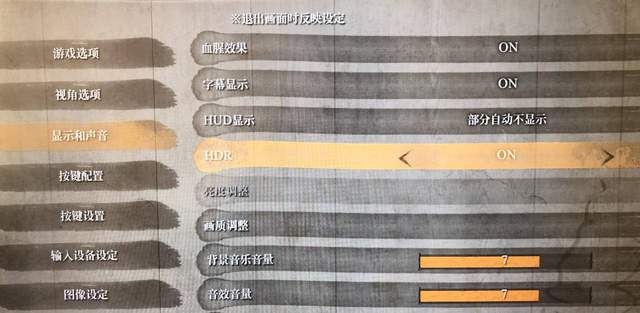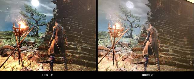 关于HDR400的功能表现,这里用热门游戏《只狼》来演示一下。游戏设置中开启HDR功能,之后进入游戏。