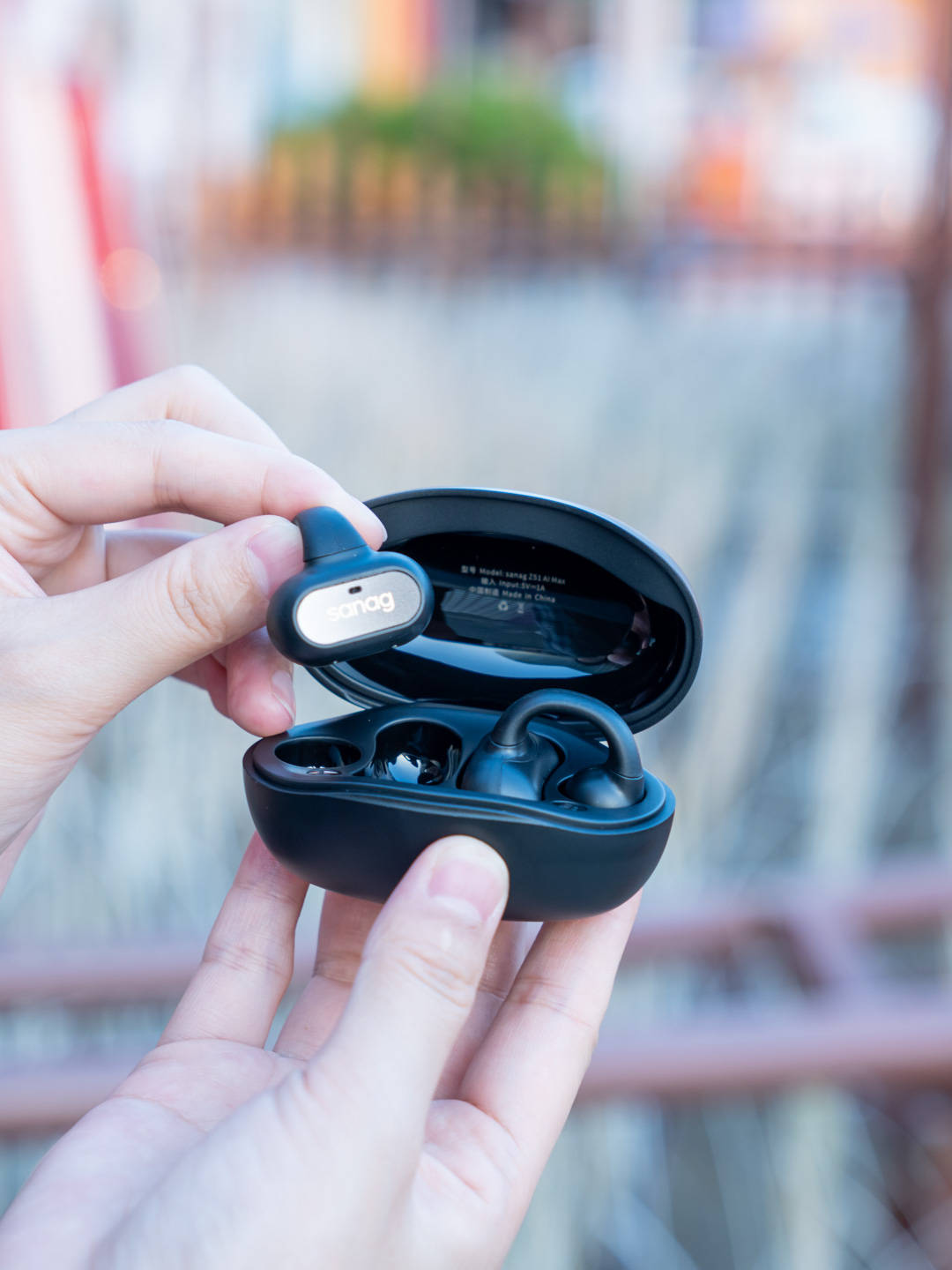sanag塞那Z51 AI Max蓝牙耳机环状设计可以保证佩戴时受力更加均匀,加上包裹在表面的一层柔软亲肤的记忆硅胶,亲肤感很好,夹戴起来不会有异物感。非入耳配合上轻量化设计,长时间使用也不会有挤压感。忆硅胶除了更亲肤外,也为耳机带来了高密封机身,耳机支持IPX5级专业防水,生活中能够有效防止下雨或则出汗对耳机造成损坏,保证二级的长时间使用。