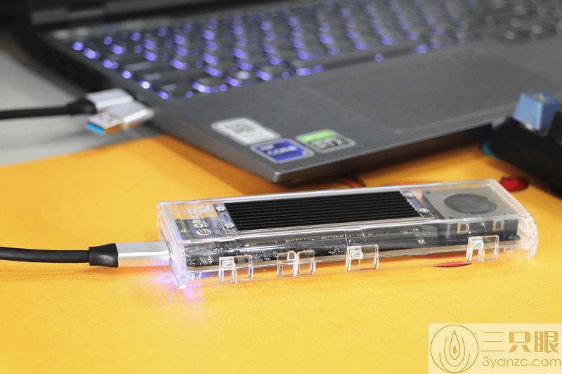 它们俩组合可以是一个非常不错的移动存储解决方案,相比于U盘来说有着很多的优点,尤其是透明的硬盘盒可还是非常富有科技感的。