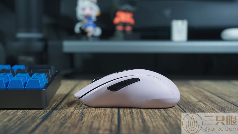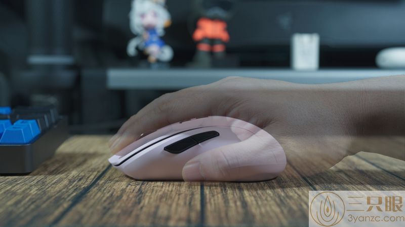 ▲鼠标握持方面,一个成年男性的手掌可以完全覆盖,稍微有点偏小,不影响使用,反到是大了更加难握持,侧中心收紧的腰线,非常适合趴握和抬鼠流操作,有时候玩游戏的操作就是趴握和抬鼠切换操作,轻量化+好握持都有了。