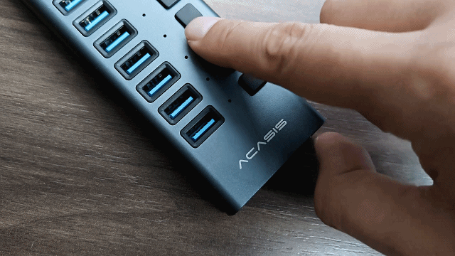只是7个接口数量确实不太够,于是几经挑选,我这次入手了阿卡西斯HS-716MG(16口)USB集线器。