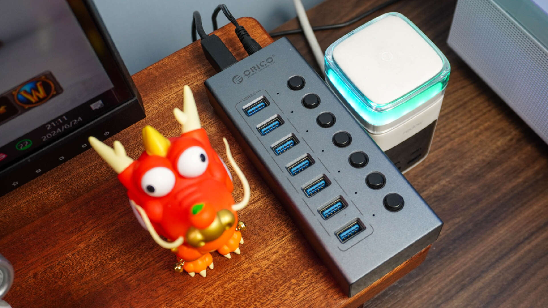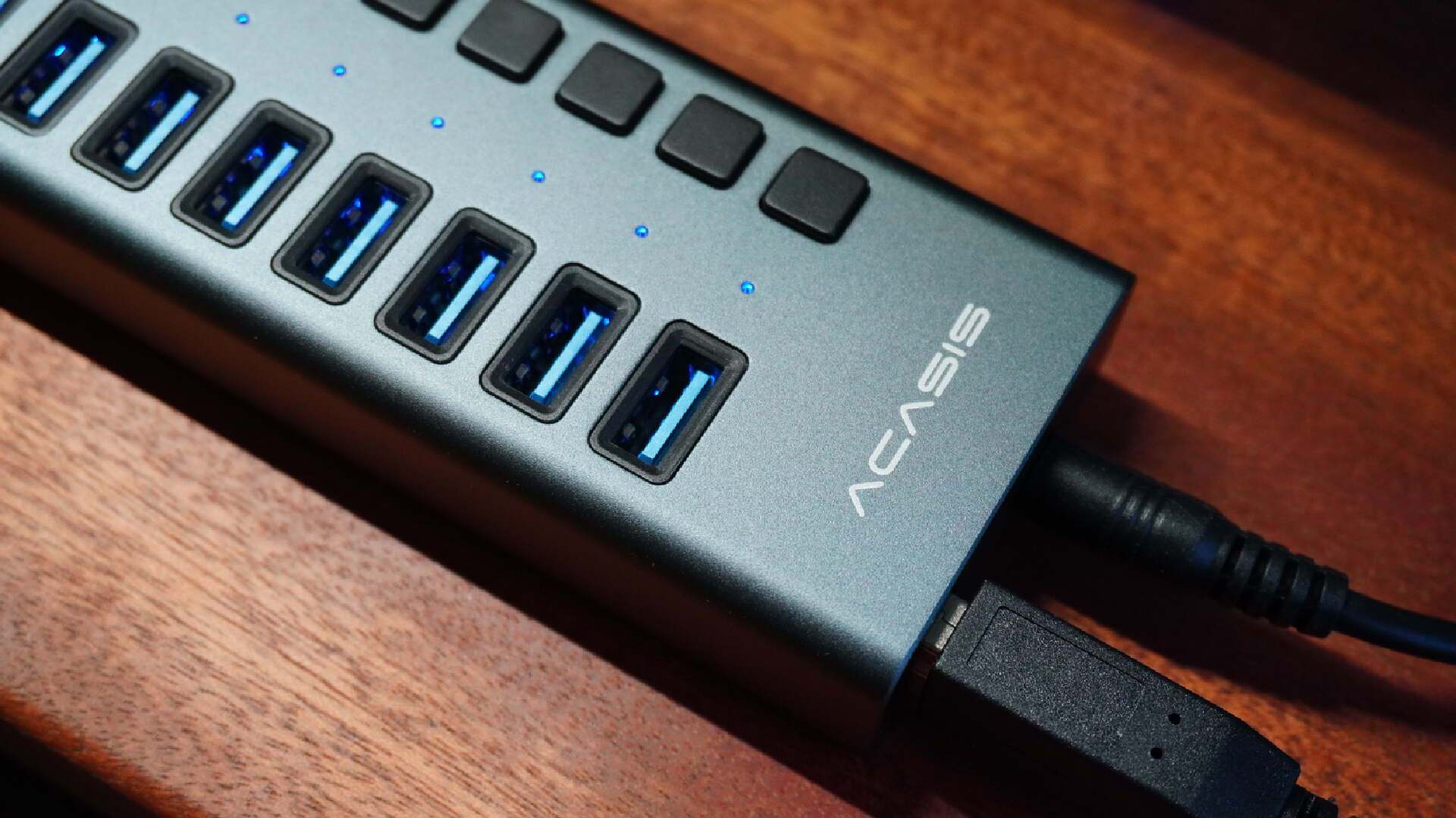 我现在用的是奥睿科7口集线器,自带独立电源,多口同插,同时挂多块移动硬盘都能正常工作,功能上完全没问题。