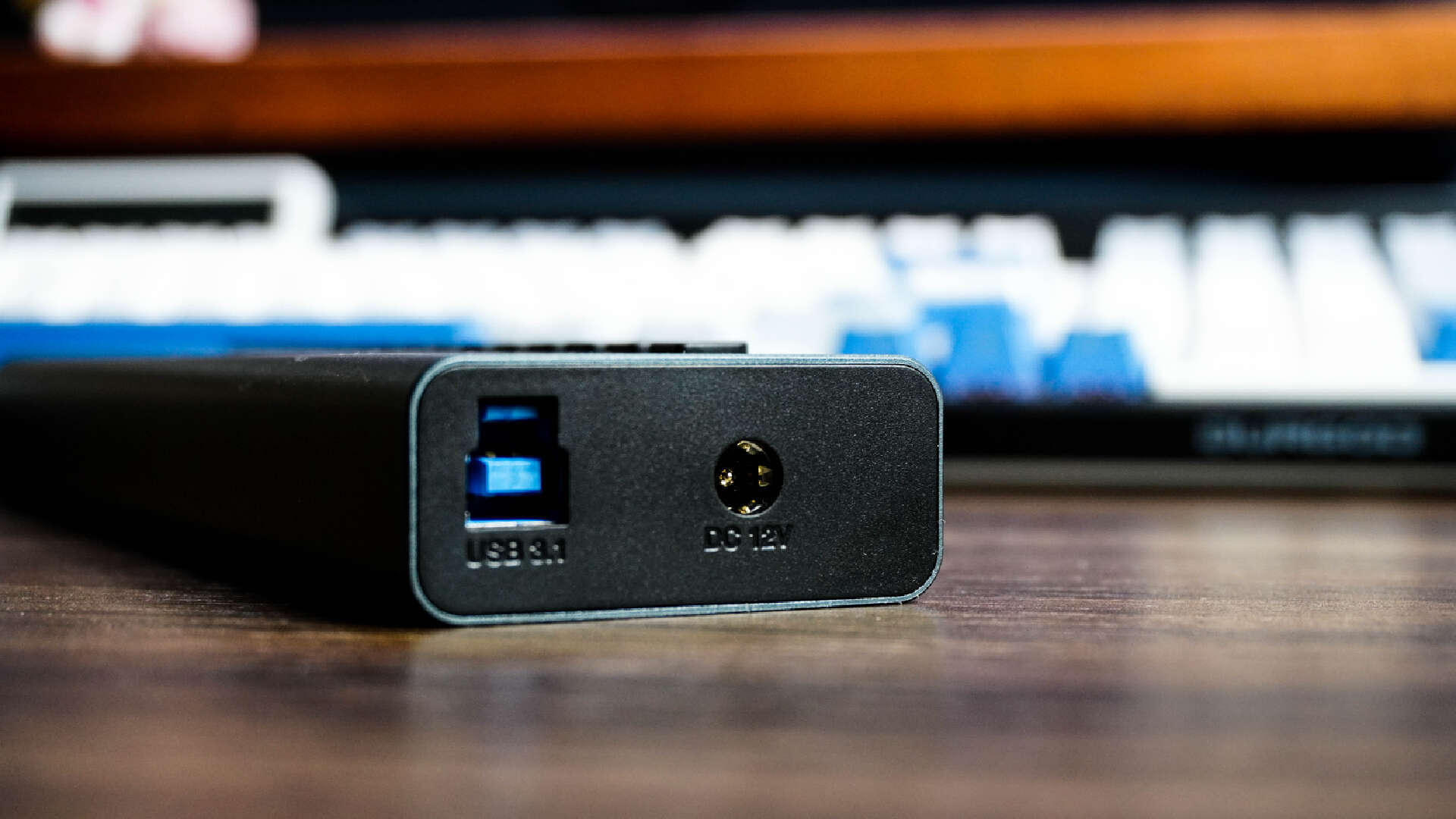 接入至电脑USB GEN3.2口,集线器插入移动固态硬盘,考察集线器的数据传输能力。