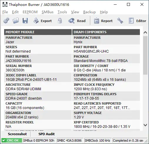 使用Thaiphoon Burner,可以看到,内存采用的颗粒为海力士。