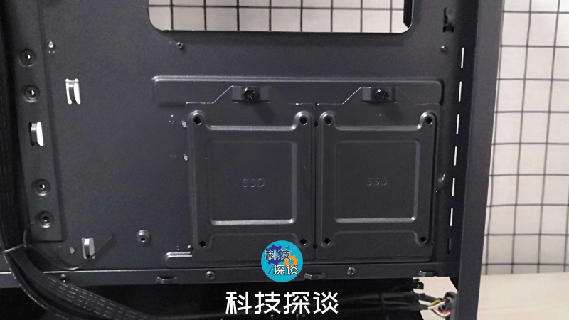 除此之外,在骨伽魔影i7中还有两个独立的2.5英寸SDD硬盘支架,也就是说骨伽魔影i7在安置同种类硬盘时能放置4个2.5英寸SDD硬盘或者2个HDD硬盘。
