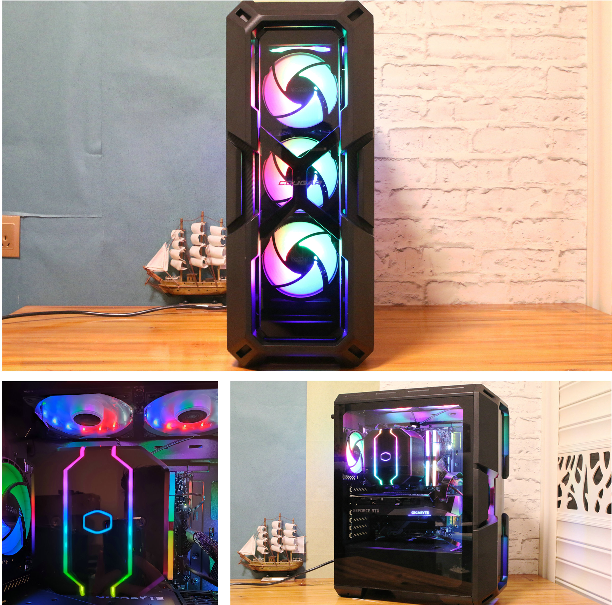 骨伽魔影i7游戏机箱左侧也采用了钢化玻璃,内部空间一览无遗。