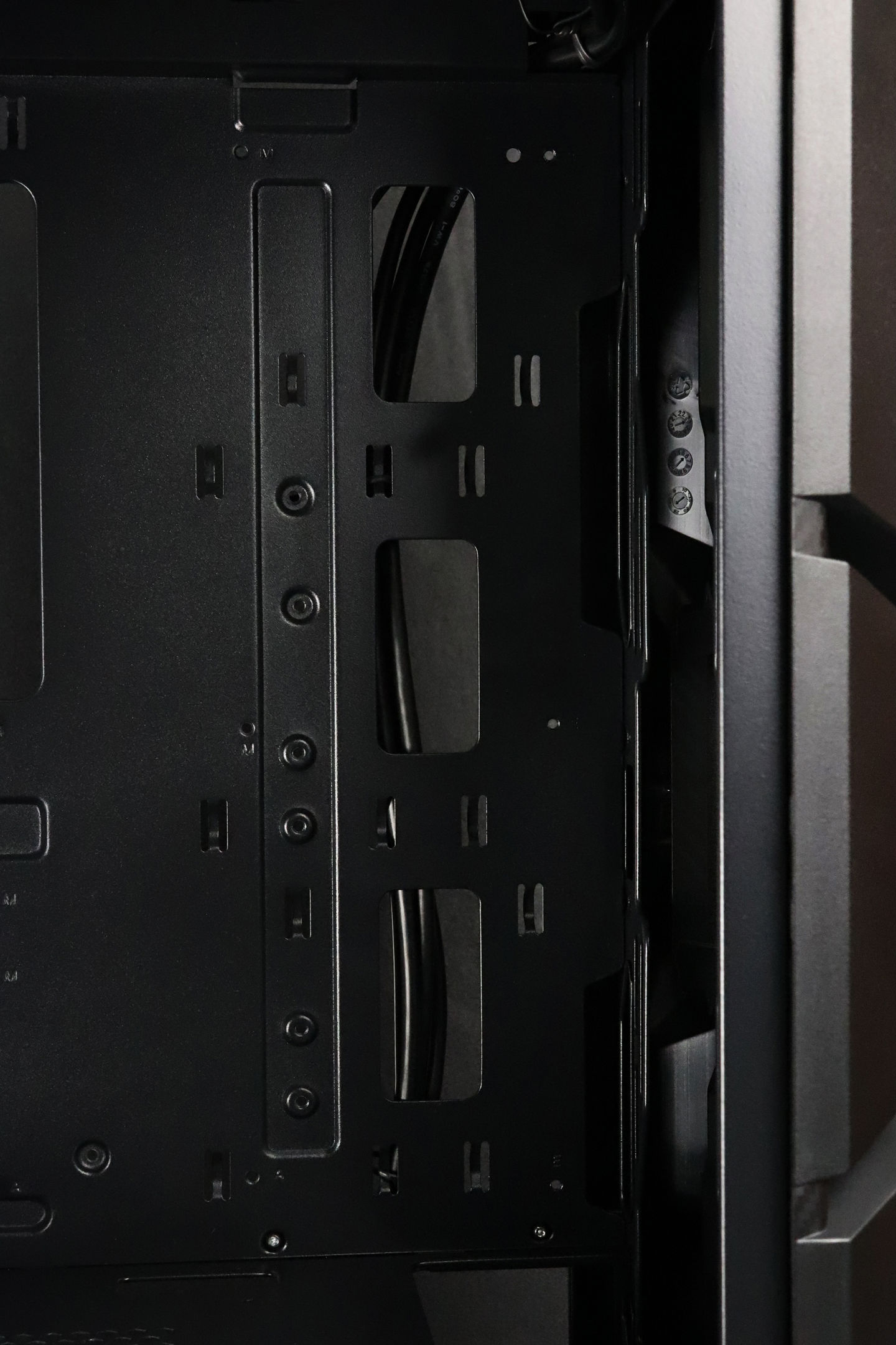 机箱背部走线可通过此处三个孔进行前后穿插: