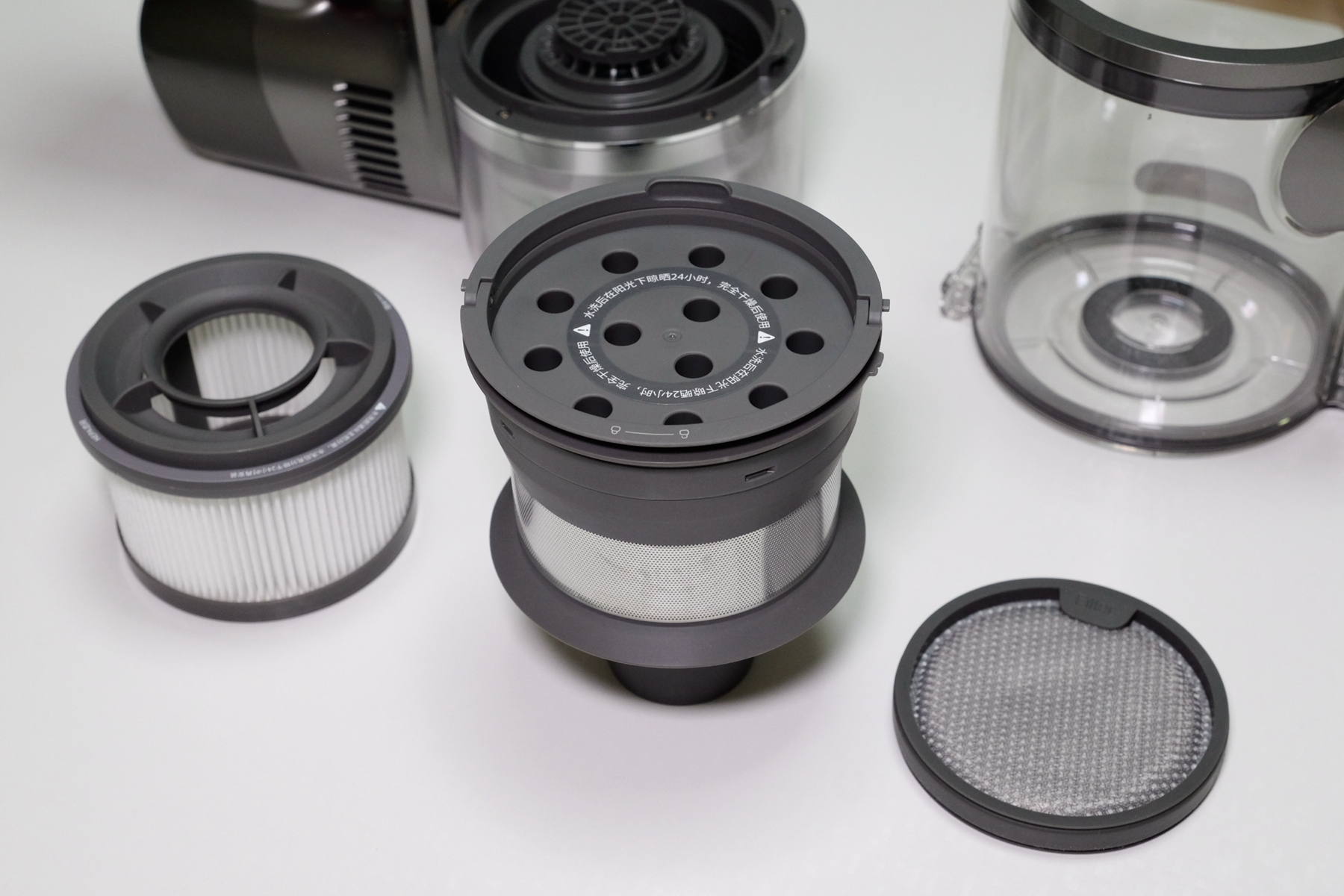 尘杯的日常清洁也非常简单,其中前置过滤网、旋风系统组件和HEPA滤网都支持水洗,晾干之后就可以重复使用,减少耗材这方面的开支。