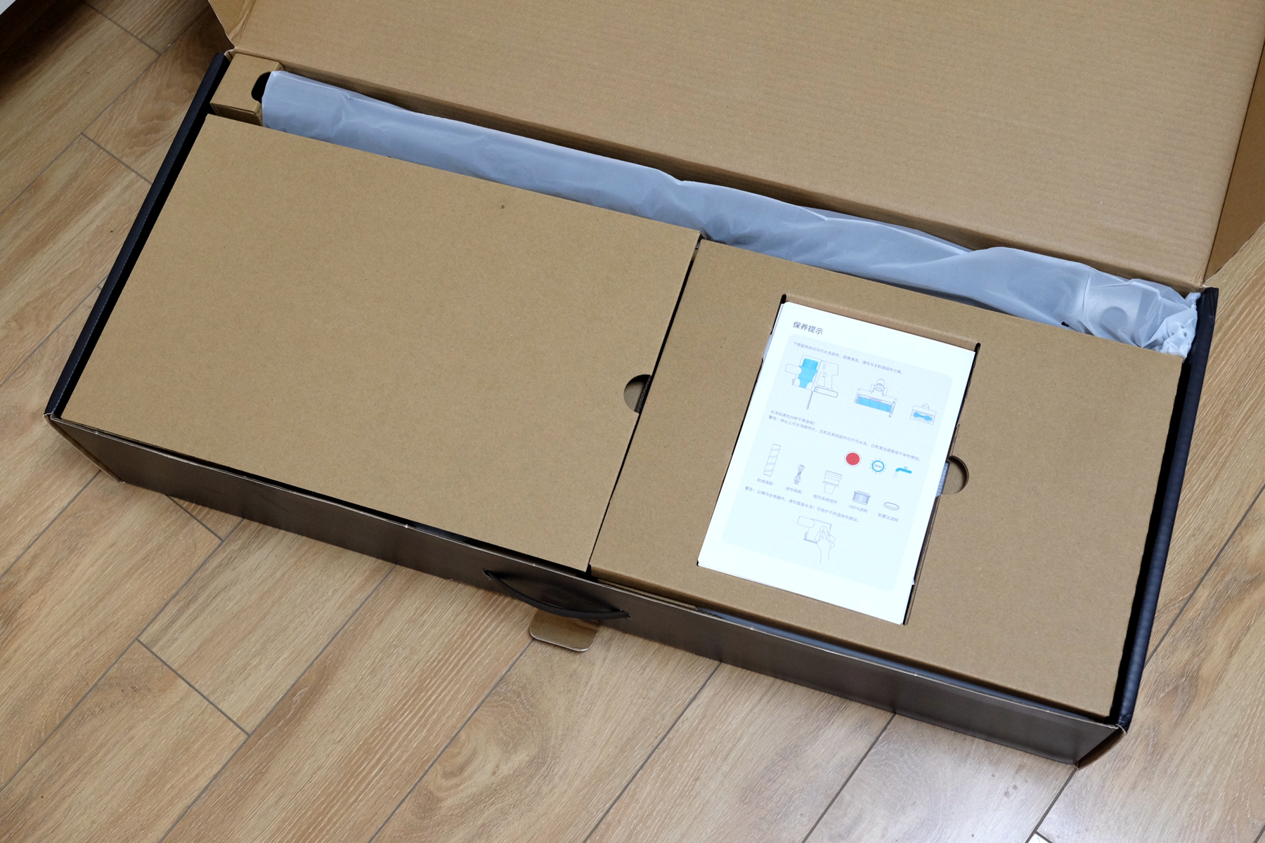 打开包装箱,主机和配件摆放井然有序,并使用塑料薄膜和纸板做了进一步的保护与加固,避免晃动,可见厂家在细节的地方还是很走心的。