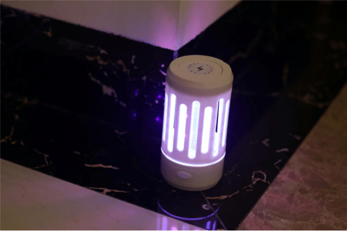 按压第二下之后就变身为我们主要的使用模式--灭蚊模式了,它在开启这个模式之后其实散发的紫光并不刺眼,挺柔和的--你看到它的第一眼甚至会以为这是一个氛围灯;整个机身没有设计啥风扇之类的,所以也不会有什么噪音产生,就安安静静的在角落里灭杀蚊子即可。