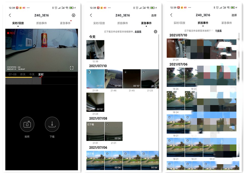当然,我们在Z40上直接打开相册的内容直接观看也是没有问题的,只需要轻按从左数第三个实体按键即可打开相册看到回放视频、抓拍事件以及紧急事件,使用体验也相当的不错!