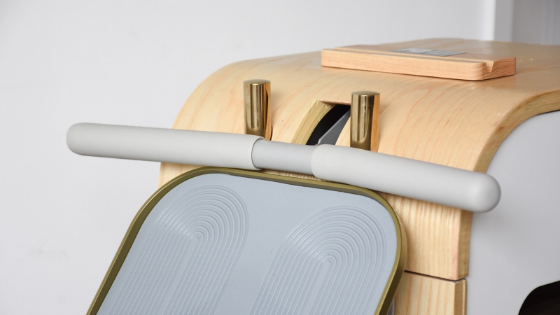 踏板上方从机身前端延伸出来手柄,金属材质且做了微微向内弯曲的造型,两端用于握持的部分套有硅胶握把,质地柔软且阻尼感较强。