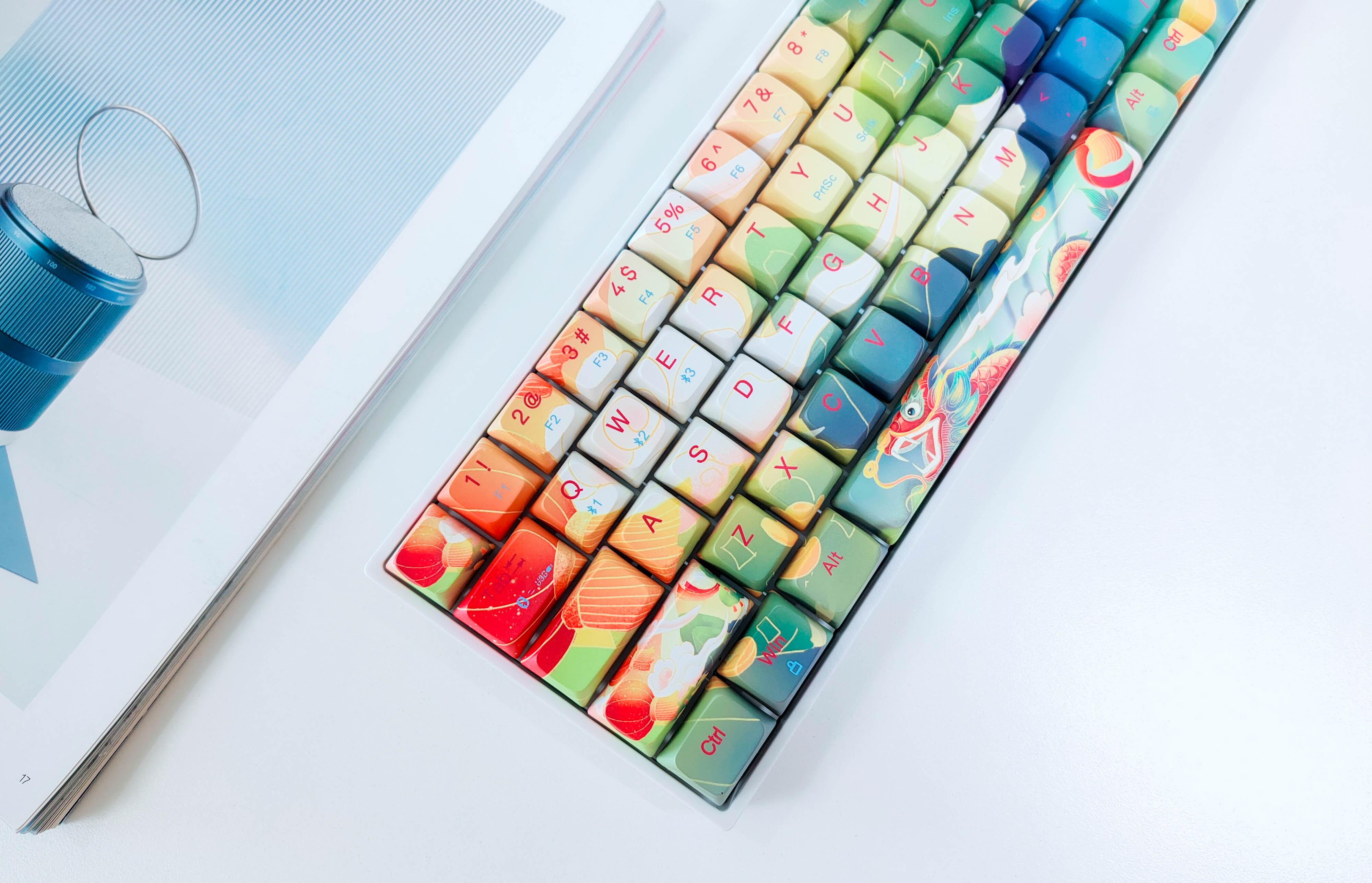 为了让键帽营造的中国画更为生动形象,每个键帽采用了五面热升华工艺,简单粗暴一点来讲就是除了键帽正面有图案外,在键帽的四侧依旧有图案,最大程度上减弱了键帽与键帽之间的画面割裂感。