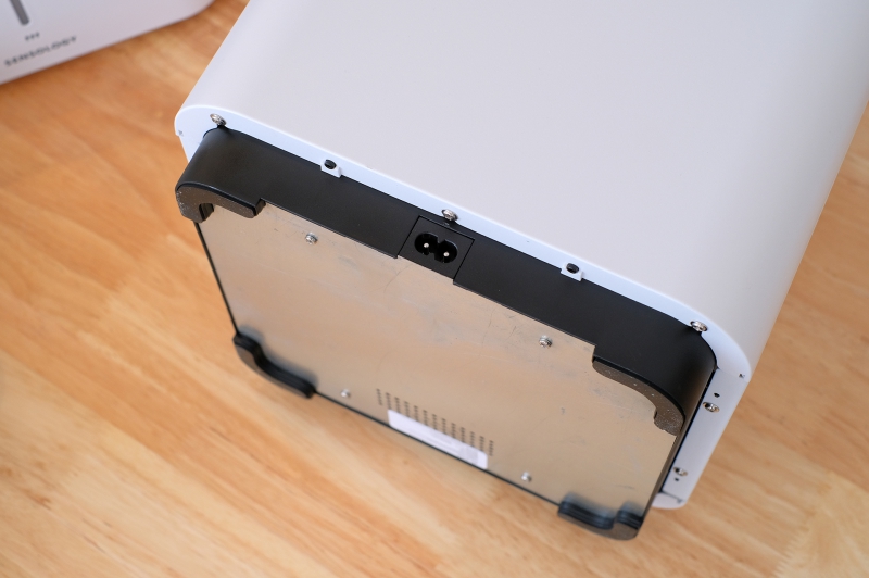 最后,在基础净化模块的最底部为电源进线口,也许是考虑到每个家庭使用的环境不同,咱们平时看到的空净底部都是和普通机身一样的ABS或者塑料材质,而思乐智的底部莫非是担心用户放置在一些极端场景?居然用的还是金属,耐磨度肯定是高了。