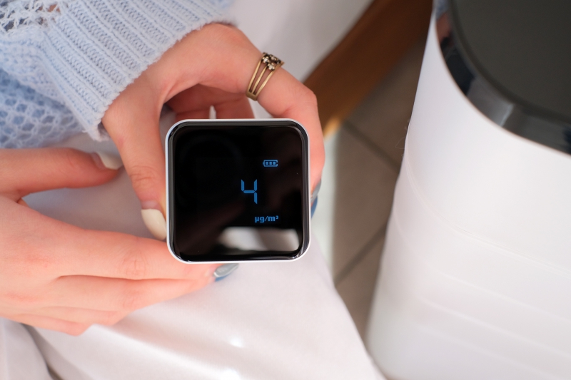思乐智空气净化器本身会通过颜色指示灯来反映出当前空气质量的状况,当空气质量为优时,指示灯为绿色,良为黄色,中为橙色,差为红色。刚开始运行时大家也看到思乐智一直是橙色代表室内空气指数并不是太好,但运行没多会儿,思乐智空净的状态指示灯就变为绿色了,代表当前室内空气已经净化很干净了,用我自己一直使用的业内很权威的352空气净化检测仪来进行专业测试,发现当前室内PM2.5数值竟然只有4μg/m³,的确是洁净了很多很多。