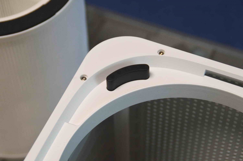 安装前我们可以注意到各个模块上的一些细节,例如,过滤模块上都分别带有数字,以用于区分安装的上下位置,模块和模块之间的连接,除了采用凸点和凹槽的定位外,模块的两侧也设有对应的卡扣设计,对准接口位置后,轻轻放上就能利用模块自身的重量扣合住,拆卸时,也只需双手按下模块两侧的卡扣,抬起模块即完成拆卸过程。