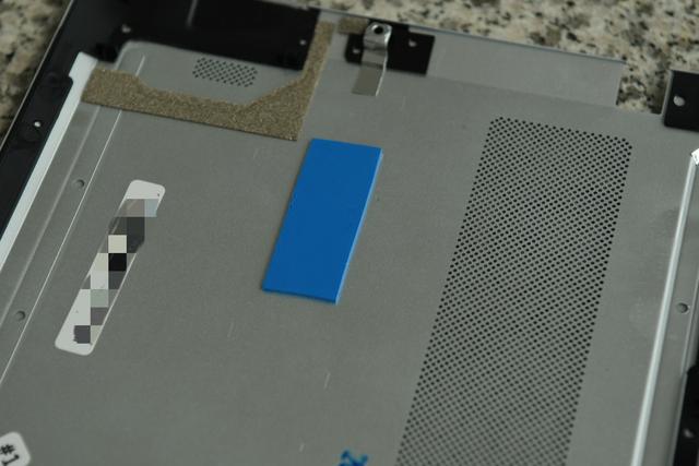 这里有块蓝色的,是导热胶垫,它对应的位置,就是M.2 NVMe SSD硬盘,这样可以加快SSD的散热。