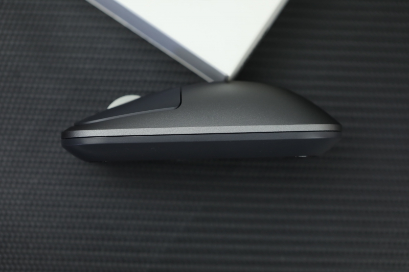 从外形上看,他和常见的圆润凸起的鼠标不同,整体设计非常的精致典雅,没有过多的设计和装饰反而显得十分的简约大气。机身整体采用了银色磨砂金属的材质,用鼠标看起来非常的有光泽感。虽然整体采用了一次冲压成型的金属材质,但是重量却很轻。不会有坠手的感觉。