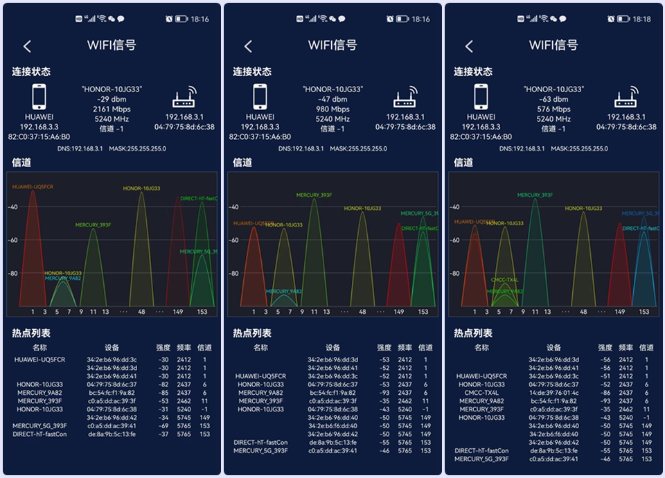荣耀路由4 Pro在网速和信号强度方面表现的还是非常出色的,我家里房间面积并不大。所以这次测试我直接拿着手机走到了楼道外侧。通过手机APP测试网络信号强度依然还有-61dbm,显然,对于150平方的大面积户型完全可以保证信号覆盖的。